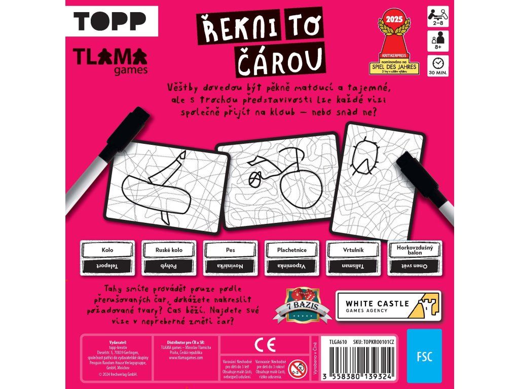 V této kooperativní hře nominované na Spiel des Jahres 2025 jsou všechny obrázky ukryty na destičce a je jen na vás, abyste jim dali konkrétní podobu! Vaším úkolem je nakreslit tajná slova, ovšem má to jeden háček – tahy smíte provádět pouze podle vyznačených přerušovaných čar. Jakmile čas vyprší a vaše díla jsou hotová, nastává fáze věštby. Dokáže váš tým rozluštit všechny prorocké kresby a odhalit skryté vize?