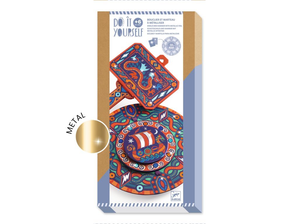 Tento kreativní set umožní dětem vytvořit si vlastní vikingský štít a mohutné kladivo, zdobené metalickými detaily. Stačí přiložit fólie na samolepicí plochy označené čísly a sledovat, jak se kovový efekt „přenáší“ na karton – úplně jako kouzlo! Po dokončení se děti můžou ponořit do světa statečných válečníků, legend a dobrodružství.