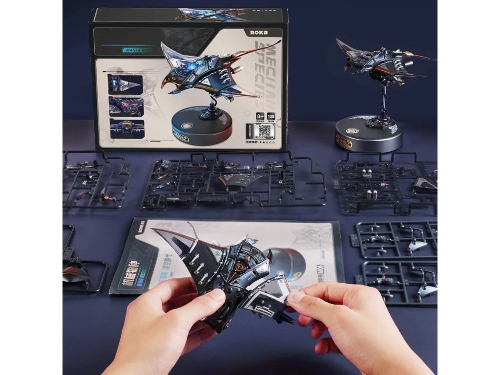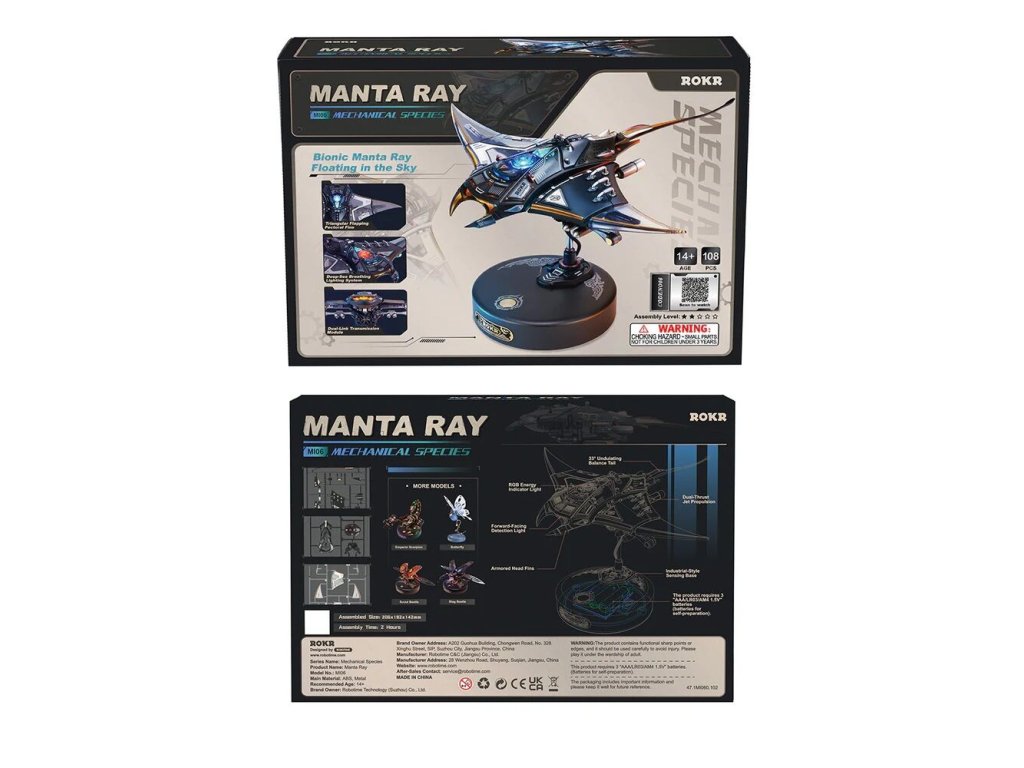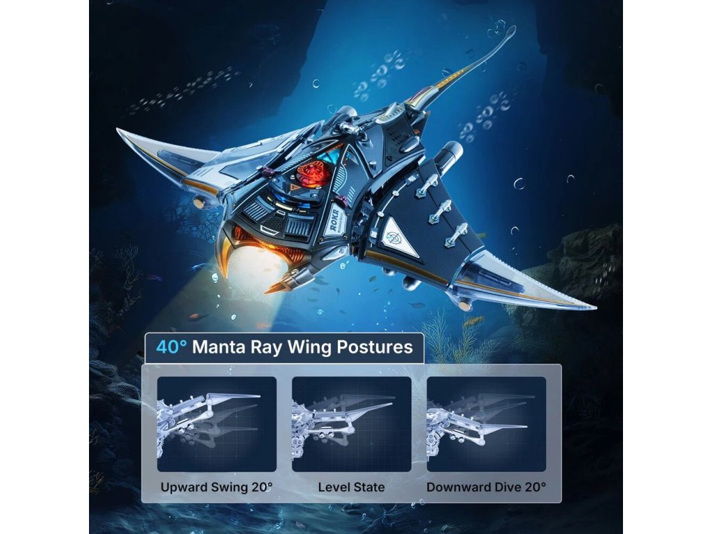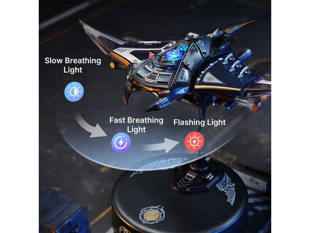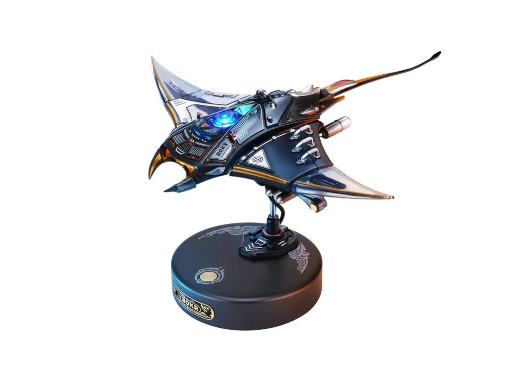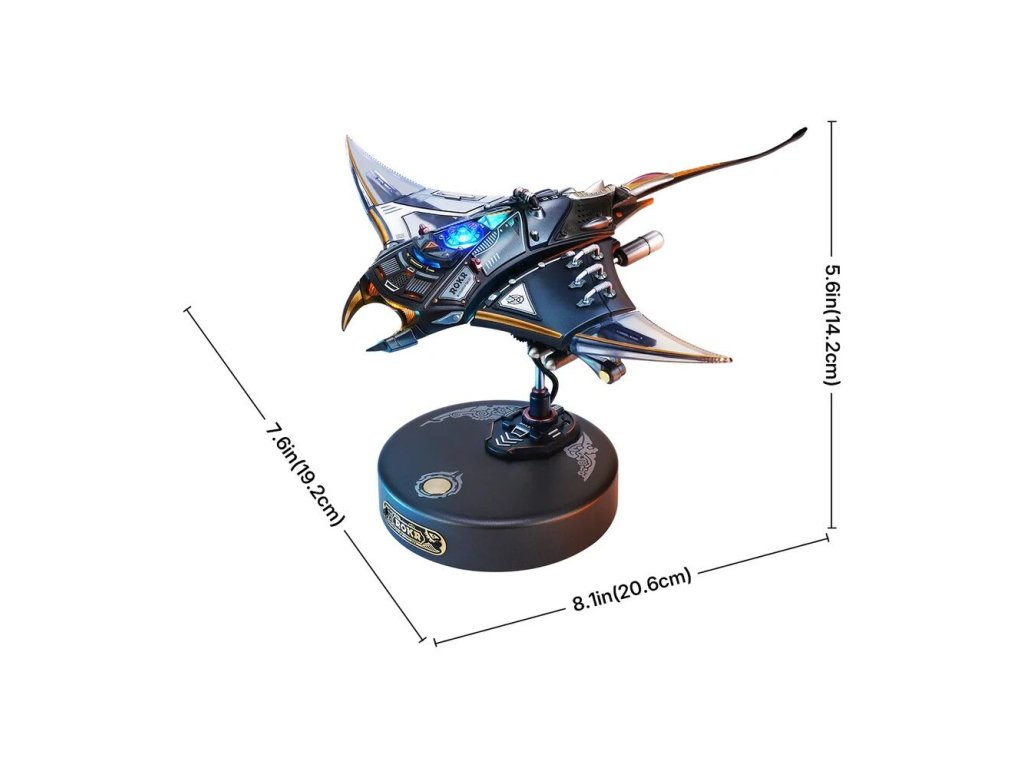 Manta rejnoka je 3D mechanické puzzle, které vás zve k tomu, abyste byli svědky tohoto fascinujícího pohybu zblízka. Tato replika manty vnese do vašeho interiéru eleganci a kouzlo mořského života. Tento miniaturní 3D model si sestavíte sami a výsledek vás okouzlí nejen pohybem, ale i světlem a atmosférou. Díky charakteristickému šípovému vzoru a plynulému pohybu ploutví model zachycuje zdánlivou beztížnou eleganci skutečné manty. Přiložený podstavec model zvedne a stiskem tlačítka se prsní ploutve začnou hladce kývat, ocas jemně kymácí a LED světla pulzují v rytmu pohybu. Druhým stiskem se spustí rychle blikající a ploutvemi zrychlující režim „Burst Mode“, který napodobuje náhlý nárůst rychlosti manty. Tento model je fascinující kombinací technické preciznosti a krásy mořského života. Skvěle se hodí jako dekorace, designový doplněk nebo originální dárek pro milovníky přírody a mechanických modelů.
