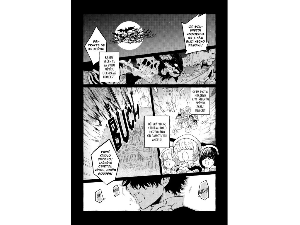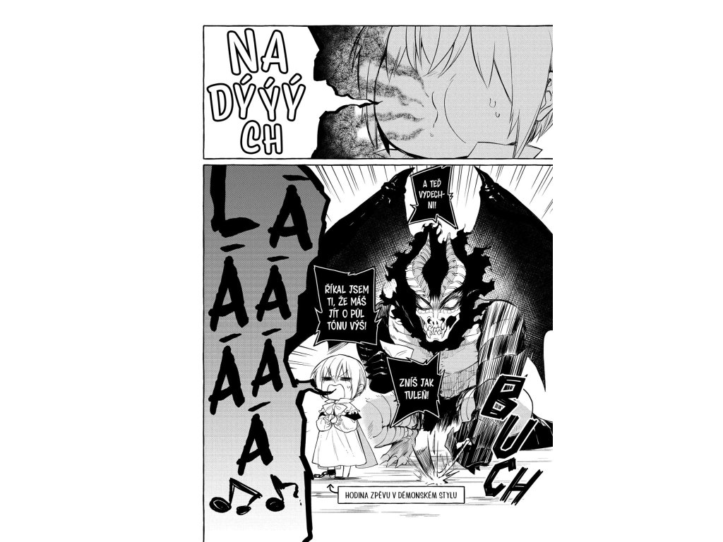 Příběh o klukovi jménem Nešika, kterého vykázali z církevního sboru, protože neuměl zpívat, a démonovi, který se shodou náhod stal jeho učitelem zpěvu. Je tu jenom jeden háček: chlapcův zpěv zabíjí démony! Exkluzivní souborné vydání mangy, která se v Japonsku stala velkým hitem na Twitteru a Pixivu! Kniha navíc obsahuje 3 bonusové kapitoly a zbrusu nový závěr celého příběhu. Dohromady více než 100 stran nového obsahu!