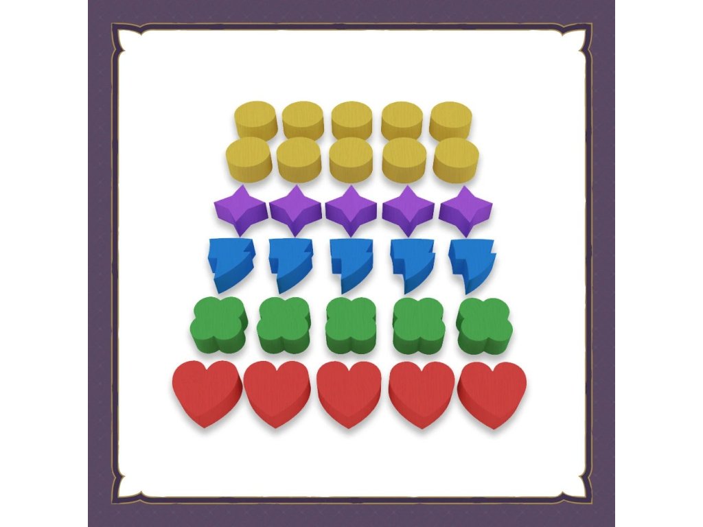 Sada 30 dřevěných žetonů na míru, které vám pomohou sledovat vaše zdraví, magii, štěstí, energii a mince během hry!